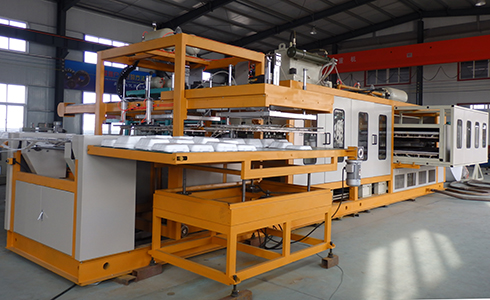 本公司研制開發(fā)的自動成型裁斷一體機是一種全能型的熱成型裁斷機組,以真空成型為主,兼壓空成型、模壓成型及綜合成型,可加工多種熱成型塑料片材。機組采用全電腦PLC控制,具有結構先進,性能穩(wěn)定,易操作,產(chǎn)量高,成型面積大,自動化程度高等特點。本機主要用于成型PSP材料,用于食品餐盒、托盤、碗、杯等各式包裝制品。本設備的最大優(yōu)點是集成型裁斷一體。生產(chǎn)出的成品直接堆垛收集。本設備在生產(chǎn)過程中除了節(jié)能降耗等優(yōu)點外,還大大節(jié)省了工作面積、生產(chǎn)時間和勞動力的支出。